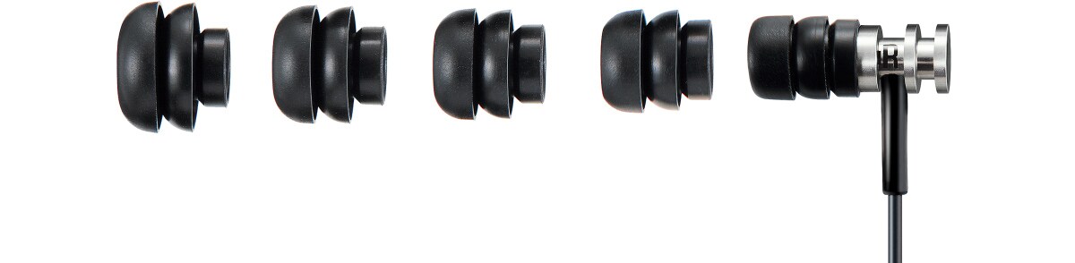 Since the fit of earphones has enormous impact on actual sound quality, the EPH-100 has its own specially designed dual-flange eartips. The first flange leads the driver to the inside of the ear along the auditory canal, while the second flange firmly secures the earphones to the ear. This results in a more powerful yet tightly defined bass. Moreover, there are five different-sized eartips so you can get the best fit.